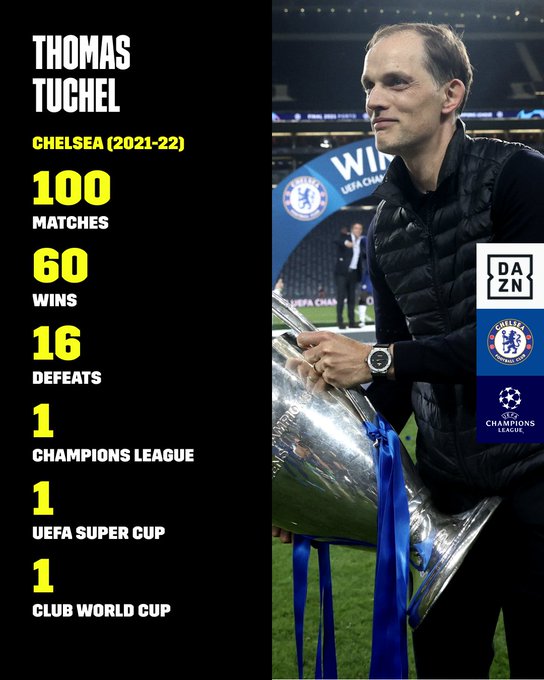 589 days in charge but no manager has ever reached more major domestic/European finals with the Chelsea than Thomas Tuchel (4)