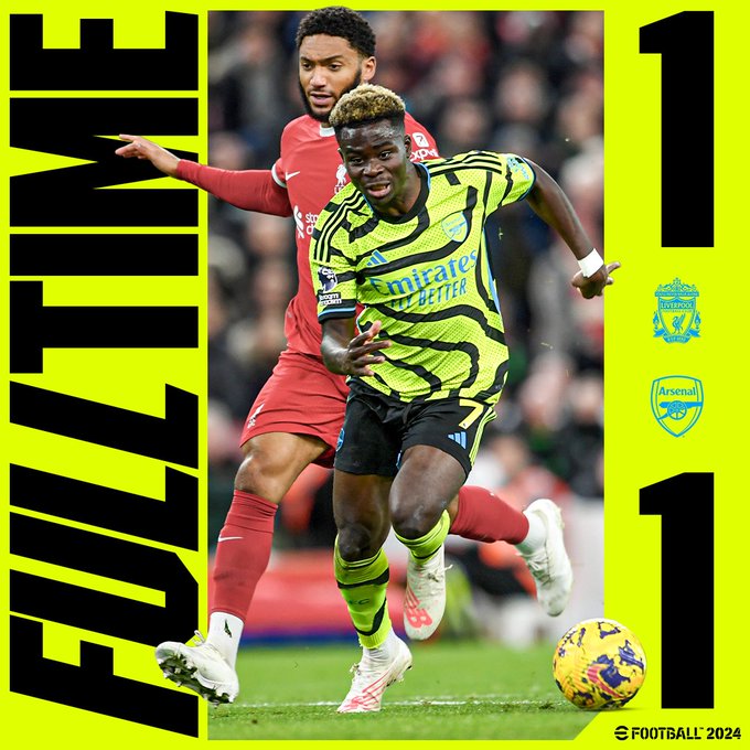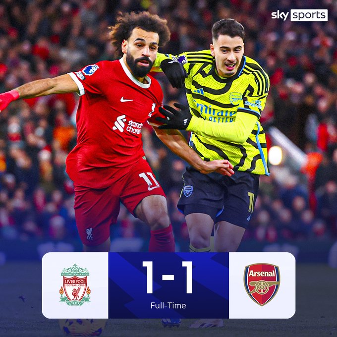 Au fil des minutes, la formation de Klopp se faisait cependant plus pressante, et sur un contre mené à 100 à l'heure par Salah, Alexander-Arnold envoyait un missile sur la transversale du portier d'Arsenal (74e). Le match restait très intense, mais Liverpool venait de laisser passer sa chance contre des Gunners qui n'ont jamais joué petit bras face à leurs rivaux dans la course au titre de champion d'Angleterre. Avec ce point pris à Anfield, Arsenal a la certitude de passer Noël à la place de leader de la Premier League avec une longueur d'avance sur Liverpool et Aston Villa. Sans jouer, Manchester City a peut-être aussi fait une bonne affaire, mais on ne le saura que plus tard.