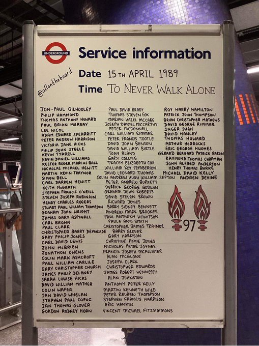 Today, and always, we remember the 97 supporters who lost their lives in the Hillsborough tragedy. We offer our love and support to all those affected by the tragedy on this very difficult day. You’ll Never Walk Alone.