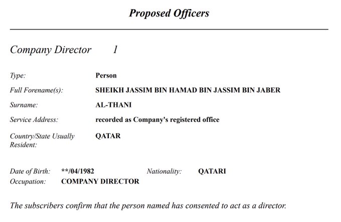 🚨 La société de Sheikh Jassim, Nine Two UK Holdings Ltd., a été enregistrée en tant que société britannique à compter d'aujourd'hui. Ça sent bon le rachat qatari pour Man United. 👀🇶🇦