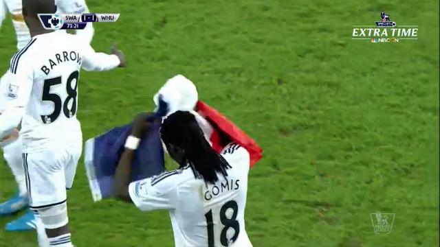Buteur de la tête face à West Ham, Bafetimbi Gomis a tenu dans la foulée à rendre hommage aux victimes des attaques subies en France ces derniers jours. L’attaquant de Swansea a ainsi déployé un drapeau français.