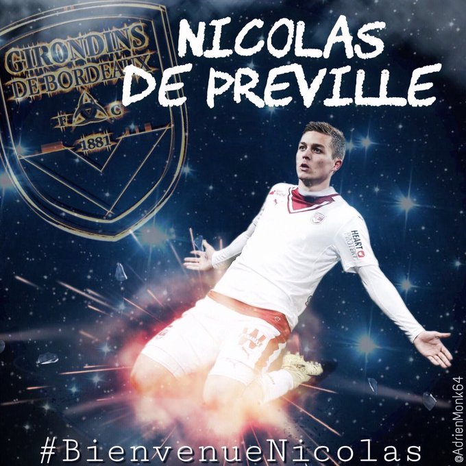 L'attaquant 🇫🇷 Nicolas De Preville vient d'atterrir à l'aéroport de Bordeaux-Mérignac ! Visite médicale demain avec les @girondins 🔵⚪️