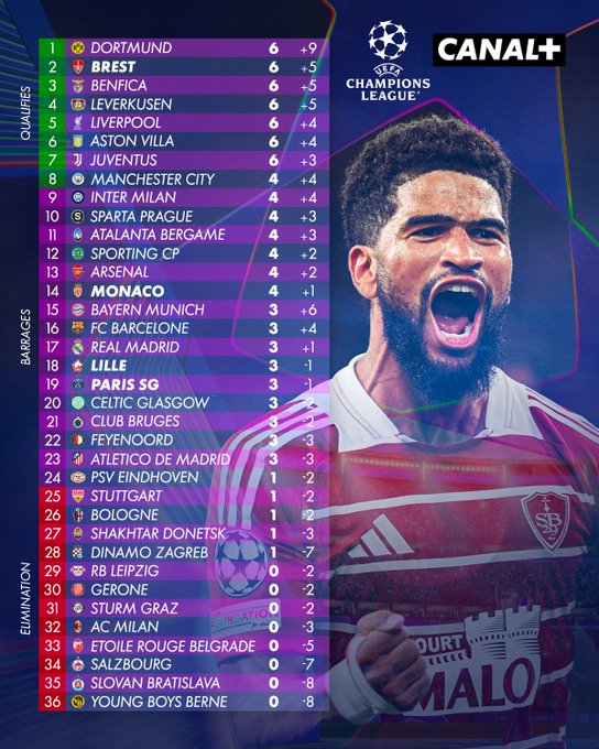 C’est vrai, le tirage au sort et le calendrier jouent pour le moment en faveur de Brest. Il n’empêche que pour la première participation de son histoire, le club breton réussit parfaitement ses débuts en Ligue des Champions. Les hommes d’Eric Roy, qui avaient dominé Sturm Graz (2-1) lors de la 1ère journée, n’ont fait qu’une bouchée du RB Salzbourg (0-4) mardi. Les voilà en deuxième position au classement général, et seulement devancés par le Borussia Dortmund avec une meilleure différence de buts.