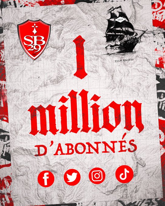 𝟭 𝗠𝗜𝗟𝗟𝗜𝗢𝗡 ! 🔥 La barre symbolique du million d'abonnés a été atteinte sur les réseaux sociaux du @SB29 💪 𝗠𝗲𝗿𝗰𝗶 𝗮̀ 𝘁𝗼𝘂𝘀... 𝗲𝘁 𝗮̀ 𝗬𝗼𝘂𝗰𝗲𝗳 😉 #TeamPirates 🏴☠️