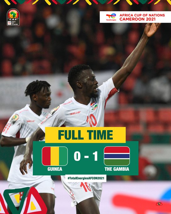 FULL-TIME! ⏰ #TeamGuinea 0️⃣-1️⃣ #TeamGambia A historical moment for the Scorpions as Musa Barrow’s finish puts The Gambia in the quarter-finals 🔥 #TotalEnergiesAFCON2021 | #AFCON2021 | #GINGMB