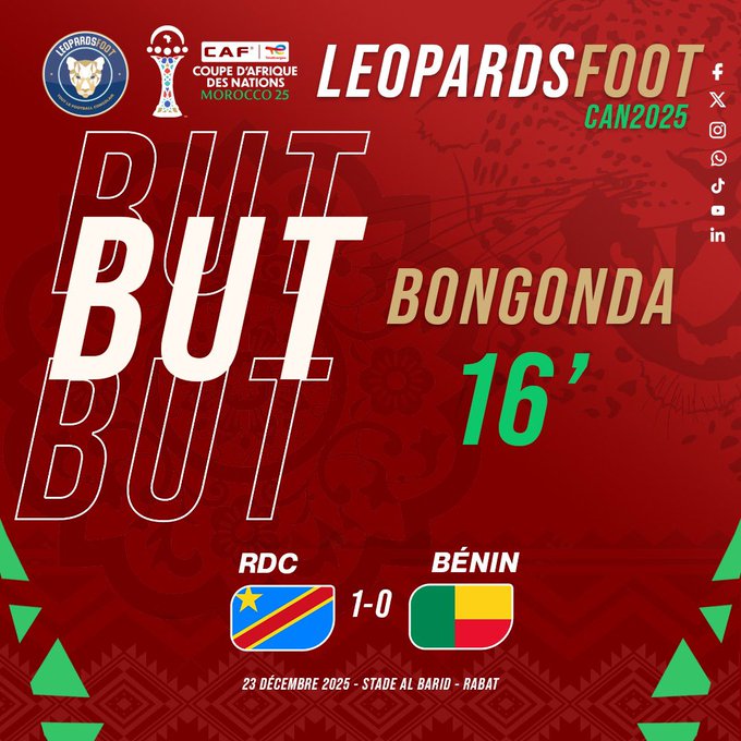 🐆 Bongonda ouvre le score pour la RDC ! 1-0 premier but dans cette CAN 2025 pour la RDC 🇨🇩