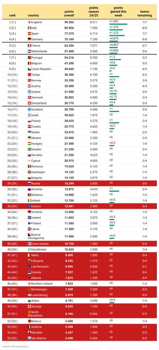 Deux défaites dommageables mais pas préjudiciables à l’indice UEFA, notamment dans la course à la cinquième place face aux Pays-Bas. En effet, à l’issue de cette semaine européenne, la France est 5e devant les clubs néerlandais avec une avance confortable de plus de 4 points. Une avance cruciale puisque rappelons que la 5e place du classement UEFA offre trois places directes en Ligue des Champions via le championnat, plus une au troisième tour préliminaire tandis que la 6e place ne donne que deux places directe et une en option.