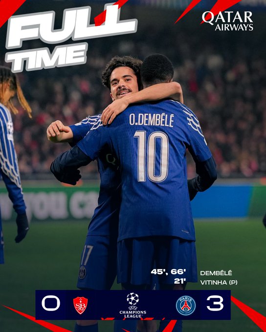 ✅ C'est terminé à Guingamp sur cette victoire parisienne (0-3) ! ⚽️ Un but de @vitinha et un doublé de @dembouz dans ce play-off aller de @ChampionsLeague. 🔜 Match retour mercredi prochain au Parc des Princes (21h) ! 🔴 ALLEZ PARIS 🔵 #SB29PSG