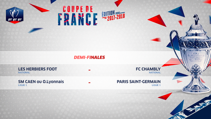 Voilà le tirage au sort complet des demi-finales de la @coupedefrance ! Un duel entre 2 clubs de National 🆚 un duel entre 2 clubs de Ligue 1 #CDF