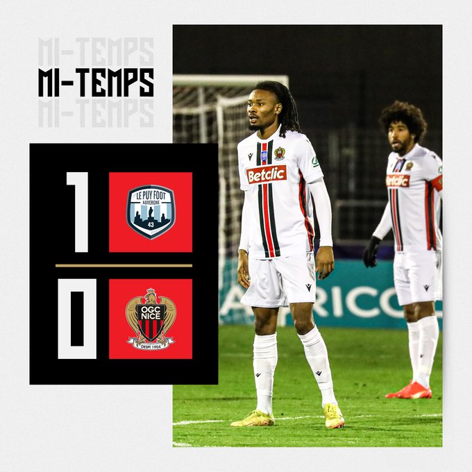 ⏸ C'est la mi-temps au Puy, où l'#OGCNice est mené depuis la 4e minute de jeu. #LPF43OGCN #CoupeDeFrance