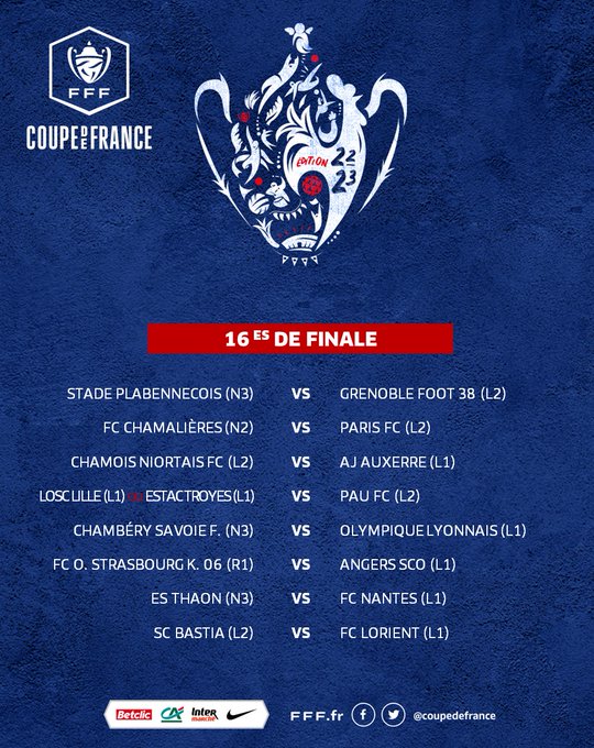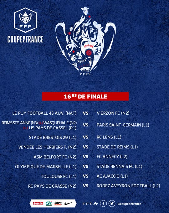 Voici les affiches des 𝟭𝟲𝙚𝙨 𝙙𝙚 𝙛𝙞𝙣𝙖𝙡𝙚 de la #CoupeDeFrance 🏆 Matchs à suivre le week-end du 21-22 janvier 🗓️
