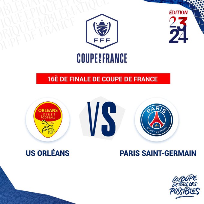 🚨 𝐎𝐅𝐅𝐈𝐂𝐈𝐄𝐋 🚨 🏟️ Le match des 16è de Finale de Coupe de France opposant nos Orléanais au @PSG_inside se disputera sur le 𝐓𝐞𝐫𝐫𝐚𝐢𝐧 𝐝’𝐇𝐨𝐧𝐧𝐞𝐮𝐫 𝐝𝐮 𝐒𝐭𝐚𝐝𝐞 𝐝𝐞 𝐋𝐚 𝐒𝐨𝐮𝐫𝐜𝐞 le 𝐬𝐚𝐦𝐞𝐝𝐢 𝟐𝟎 𝐣𝐚𝐧𝐯𝐢𝐞𝐫 𝐚̀ 𝟐𝟎𝐡𝟒𝟓. #TeamUSO 🟡🔴
