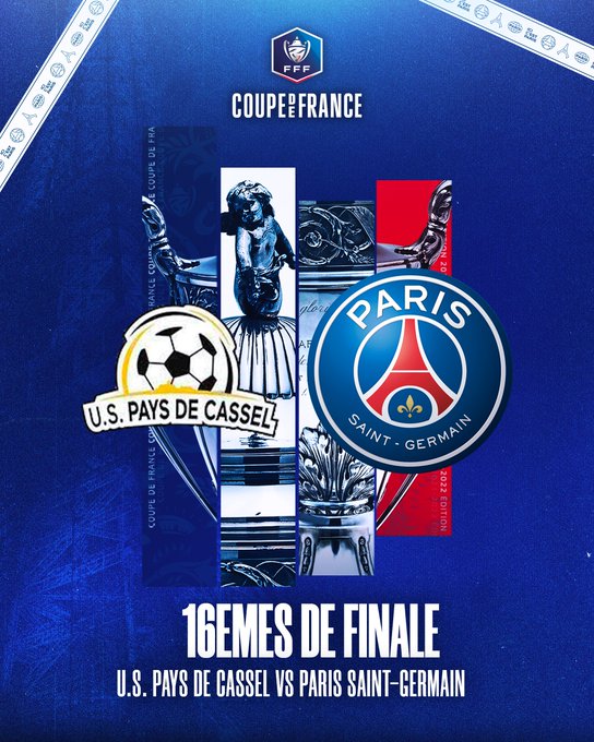 🏆🔴🔵 Le Paris Saint-Germain affrontera l'U.S. Pays de Cassel (R1) en 16es de finale de la #CoupeDeFrance !