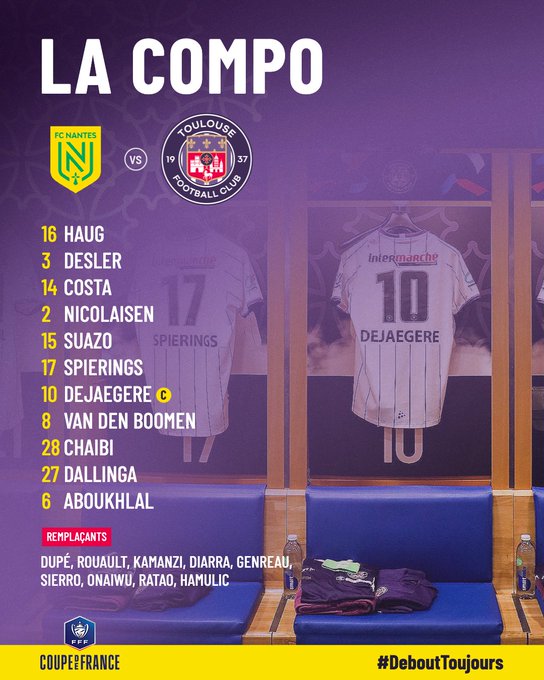 #FCNTFC, le 𝙤𝙣𝙯𝙚 𝙩𝙤𝙪𝙡𝙤𝙪𝙨𝙖𝙞𝙣 pour notre finale de #CoupeDeFrance 😈 Dès 21h00, accompagnés de nos fervents supporters, à nous d'écrire notre histoire dans la capitale 💪