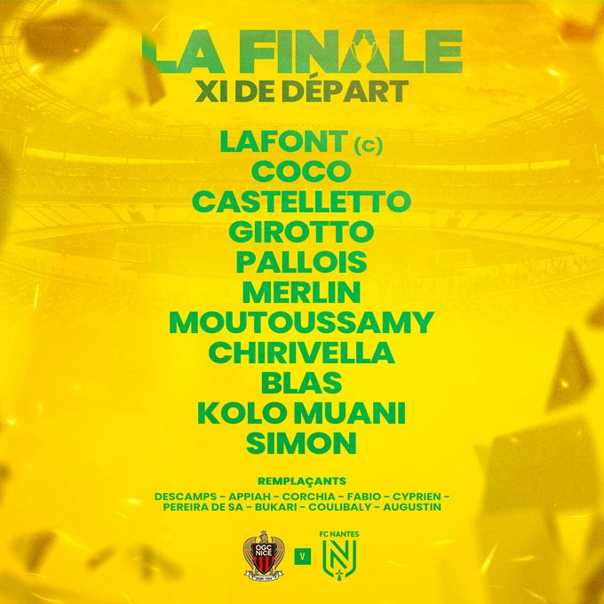 π΄β«οΈ NiΓ§oises, NiΓ§ois... voici la compo' du Gym pour cette Finale de #CoupeDeFrance ! #NissaEnFinala #OGCNice