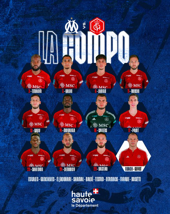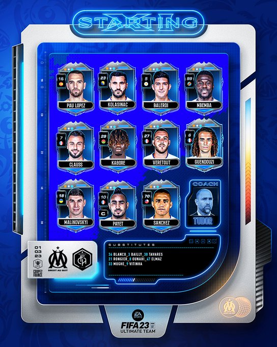 👥 Le 𝗫𝗜 𝗱𝗲 𝗱𝗲́𝗽𝗮𝗿𝘁 olympien pour ce quart de finale de @coupedefrance face aux Annéciens à l’@orangevelodrome ! 🔥 #OMFCA