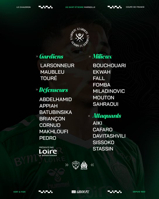 Traversant une période compliquée, avec trois défaites de suite en L1 et une place de barragiste peu reluisante suite à une première partie de saison délicate, Sainté a vécu une semaine agitée. Déjà avec le départ d’Olivier Dall'Oglio puis avec l’arrivée de son successeur, le Norvégien Eirik Horneland. Mais ce dimanche face à l’OM, c’est Laurent Huard qui s'assoira sur le banc des Verts avec l’ambition de réaliser l’exploit de sortir Marseille de la Coupe de France dès l’entrée en lice des clubs de L1. Sainté sera privé de Pétrot, Amougou, Nadé, Boakye, Tardieu, Monconduit ou Maçon.