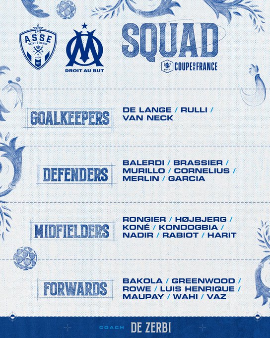 Déjà trop loin du PSG dans la course au titre en L1, avec dix points de retard et un match en moins pendant la trêve hivernale, l’OM va tenter de tout faire pour remporter la Coupe de France cette saison. En manque de trophée depuis 2012, le club phocéen a des ambitions avec Roberto De Zerbi. Autant dire que ce déplacement à Sainté pour son entrée en lice en 32es de finale sera pris très au sérieux par les Phocéens. La compo probable de l’OM : De Lange - Murillo, Balerdi, Kondogbia - Luis Henrique, Hojbjerg, Rongier, Merlin - Greenwood, Wahi, Rabiot.