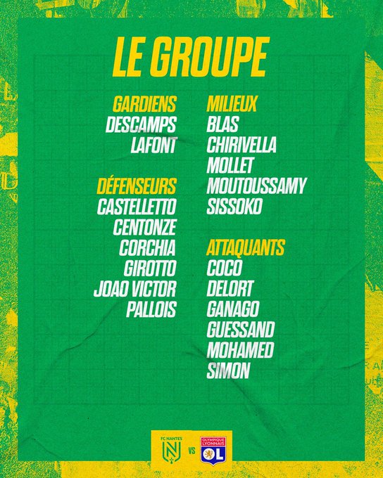 📋 𝗟𝗲 𝗴𝗿𝗼𝘂𝗽𝗲 𝗰𝗼𝗻𝘃𝗼𝗾𝘂𝗲́ par Coach Kombouaré pour la demi-finale. #fcnol