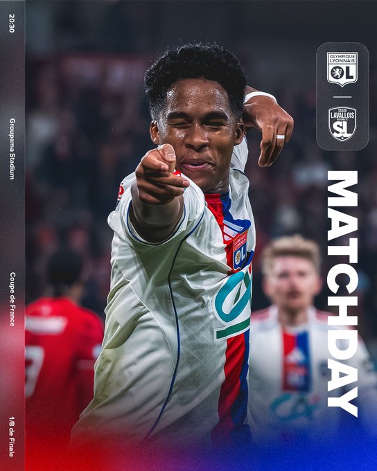 🔴 𝗝𝗢𝗨𝗥 𝗗𝗘 𝗠𝗔𝗧𝗖𝗛 🔵 ⚽ #OLSL 📆 1/8 de finale de @coupedefranceCA ⌚ 20:30 🏟 @GroupamaStadium 📺 @beinsports_FR 🎟️ Réservez vos places 👉 billetterie.ol.fr/fr/catalogue/m… ▶ Avant-Match et live audio dès 20:00 sur @OLPLAY_Officiel et YouTube ! Allez les Gones ! 🦁🔴🔵