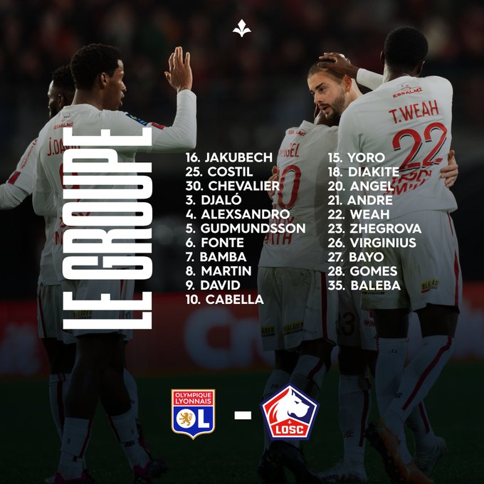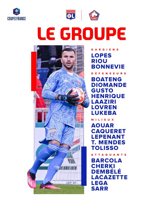 🦁 Voici notre groupe pour la réception de Lille ce mercredi à 18h15 en 8ème de finale de la #CoupeDeFrance 👊🔴🔵 #OLLOSC