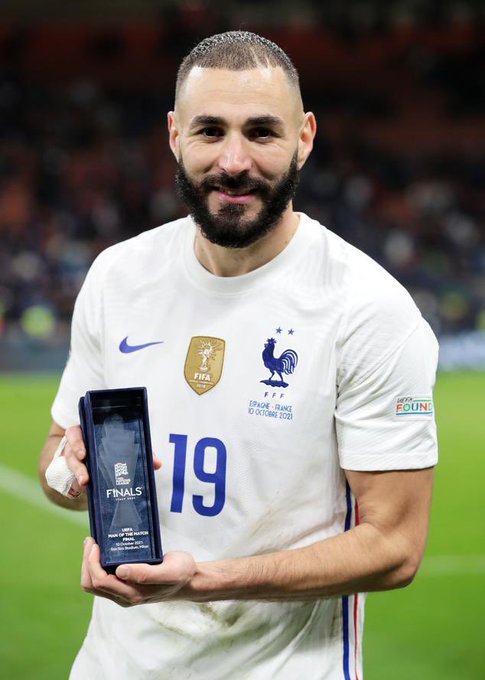 Karim Benzema 🇫🇷 élu homme du match ! 🏆 📸 @EURO2020FR #ESPFRA #NationsLeagueFinal