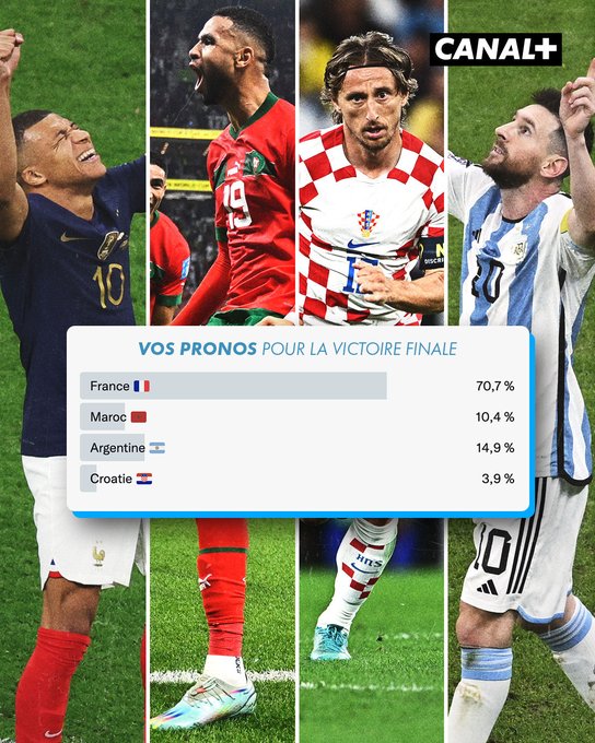 Vous voyez à 71% la France remporter la Coupe du Monde ! 🇫🇷🤩 On se projette sur la suite de la #CDM2022 dans quelques minutes dans le CFC ! 👀 En clair et à 19H30 sur CANAL+ 📺