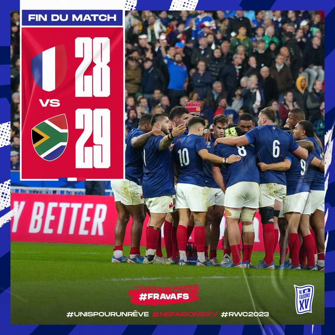 🇫🇷🇿🇦 Les Bleus s'inclinent ce soir contre les Champions du Monde au @StadeFrance. #FRAvAFS #UnisPourUnRêve #RWC2023 #XVdeFrance