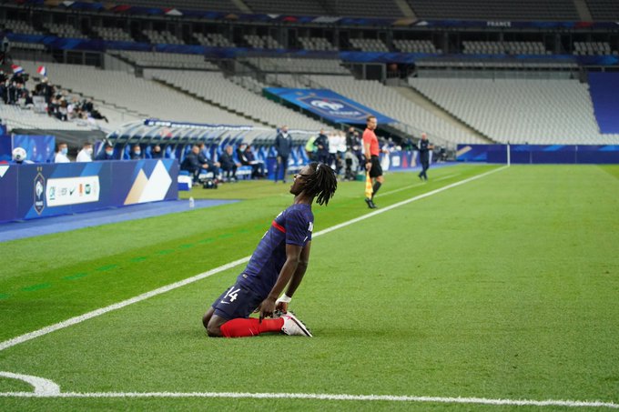 2ème plus jeune joueur de l’histoire de l’équipe de France à marquer avec les Bleus (17 ans et 11 mois) ! 🔥 @ecama10 🇫🇷1-0🇺🇦 #FRAUKR #FiersdetreBleus