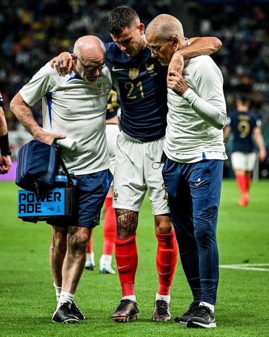 Lucas Hernandez was forced off in the ninth minute. Another injury for France 😕