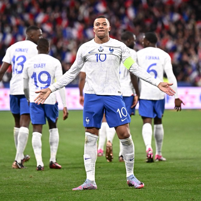 Kylian Mbappé cette saison avec l'équipe de France : 🏟 10 matches ⚽️ 11 buts 🎯 3 passes décisives Taille patron. 🇫🇷👑