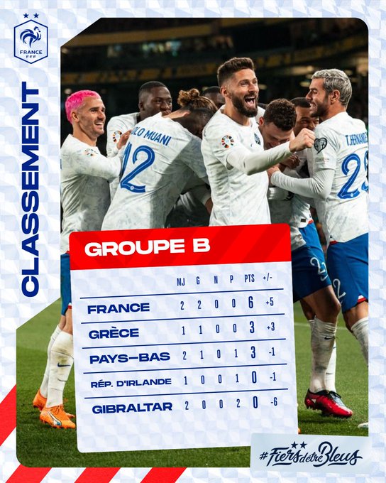équipe de France a débuté sa campagne éliminatoire de l’Euro 2024 sur son petit nuage, avec une victoire convaincante face aux Pays-Bas (4-0) puis un succès accroché en Irlande ce lundi soir (0-1). Pour poursuivre leur série victorieuse, les Bleus ont du faire fonctionner d’autres armes. Une solidité défensive, du combat, et une efficacité assez redoutable puisque les hommes de Didier Deschamps n’ont pas eu tant d’occasions que cela à se mettre sous la dent. Si le milieu de terrain a beaucoup travaillé, l’animation offensive a été plus balbutiante. Si souvent intouchable quand il évolue avec le maillot tricolore, Kylian Mbappé est resté non seulement muet, mais en plus il n’a pas beaucoup pesé sur le jeu de son équipe. Ce fut aussi le cas d’un Olivier Giroud qui est allé au charbon mais n’a pas vraiment été trouvé, et d’un Randal Kolo-Muani qui a souffert physiquement face à une formation en mode « Championship ».
