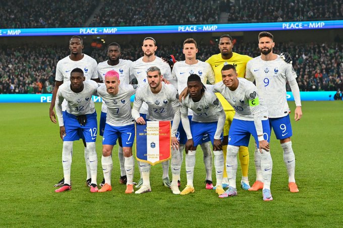 Les notes des Bleus 🇫🇷 face à l'Irlande : Maignan : 8 (🥵) Pavard : 7 Konaté : 6 Upamecano : 5 Théo Hernandez : 3 (🥶) Griezmann : 4 Camavinga : 6 Rabiot : 4 Kolo Muani : 4 Giroud : 3 (🥶) Mbappé : 3 (🥶) (@lequipe)