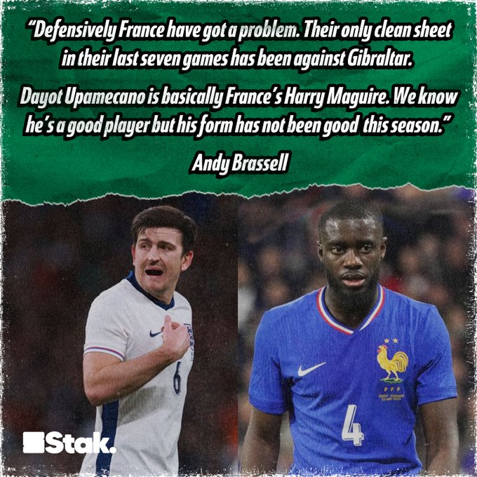 Un choix fort qui n’étonnerait pas Andy Brassell, qui n’hésite pas à comparer le défenseur du Bayern Munich à Harry Maguire, la tête de turc des supporters anglais. « Défensivement, la France a un problème. Leur seul clean-sheet lors de leurs sept derniers matchs a été contre Gibraltar. Et puis, Dayot Upamecano est le Harry Maguire de la France. Nous savons que c'est un bon joueur, mais sa forme n’est pas bonne du tout cette saison », a lancé le spécialiste du football anglais sur le podcast On The Continent. Cette déclaration ne va pas faire rire le principal intéressé, surtout que ce dernier est déjà dans le dur au Bayern. Pas autant impérial que la saison passée, le Français a par exemple écopé de deux cartons rouges en quatre jours en février dernier, et notamment en Ligue des Champions face à la Lazio Rome. S’il veut donc garder une place importante en sélection en vue de l’Euro, le joueur de 25 ans va devoir se remettre la tête à l’endroit avec son club d’ici à la fin de la saison.