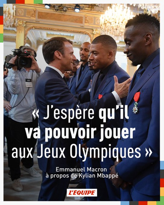 Lors d'une visite dans une école primaire à Paris, Emmanuel Macron n'a pas caché son envie de voir Kylian Mbappé prendre part aux Jeux Olympiques cet été >ow.ly/FgXi50R9nro