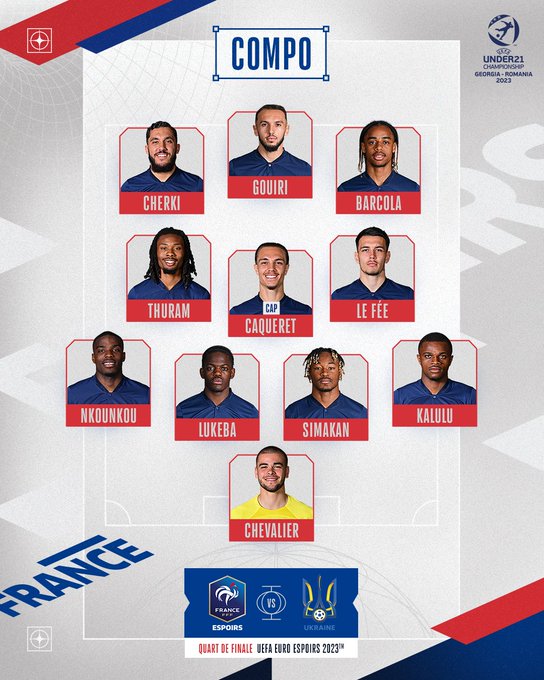 𝗡𝗢𝗧𝗥𝗘 𝟭𝟭 𝗗𝗘 𝗗𝗘́𝗣𝗔𝗥𝗧 🔥 La composition concoctée par Sylvain Ripoll pour le quart de finale contre l'Ukraine 👊⤵️ ⏳ Coup d'envoi à 21h00 📺 Sur W9 et beIN SPORTS 1 #FRAUKR | #EuroEspoirs
