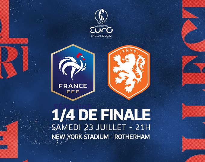 France 🇫🇷-🇳🇱 Pays-Bas Voici l'affiche de notre 1/4 de finale 🔥 #FiersdetreBleues #WEURO2022