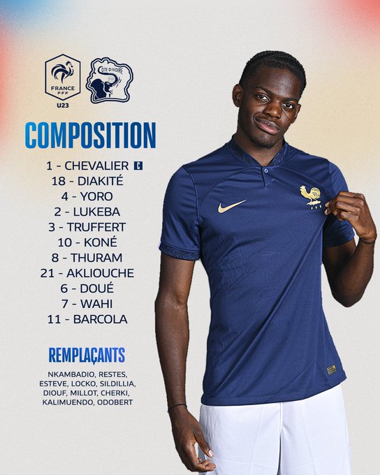 Voici le premier 𝟭𝟭 𝗱𝗲 𝗱𝗲́𝗽𝗮𝗿𝘁 de l'année 2024 pour les 𝗨𝟮𝟯 de Thierry Henry ! 👊 RDV à 18h30 sur @lachainelequipe pour suivre le match 🇫🇷🇨🇮