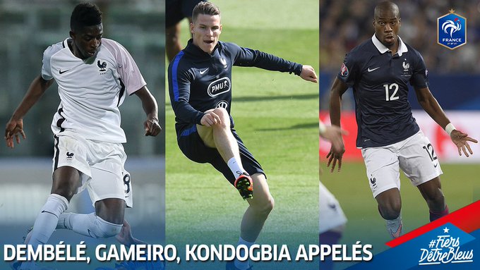A.Lacazette, N.Fekir et Y.Cabaye sont forfaits et remplacés par O.Démbélé, K.Gameiro et G.Kondogbia ! 🇫🇷