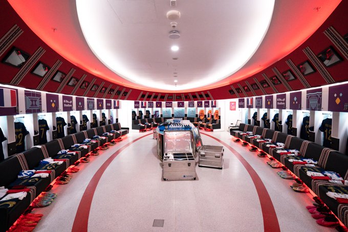 𝙀𝙣 𝙥𝙡𝙖𝙘𝙚 👕👌 Le vestiaire des Bleus est prêt pour cette 𝗱𝗲𝗺𝗶-𝗳𝗶𝗻𝗮𝗹𝗲 de Coupe du Monde 🏆 🇫🇷🇲🇦 | #FRAMAR | #FiersdetreBleus