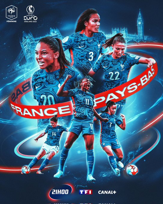 JOUR DE 1/4 DE FINALE 🔥 ⚽ France 🇫🇷-🇳🇱 Pays-Bas 🏟️ New-York Stadium Rotherham ⌚ 21h 📺 @TF1 / @canalplus #FRAPBS #FiersdetreBleues #WEURO2022