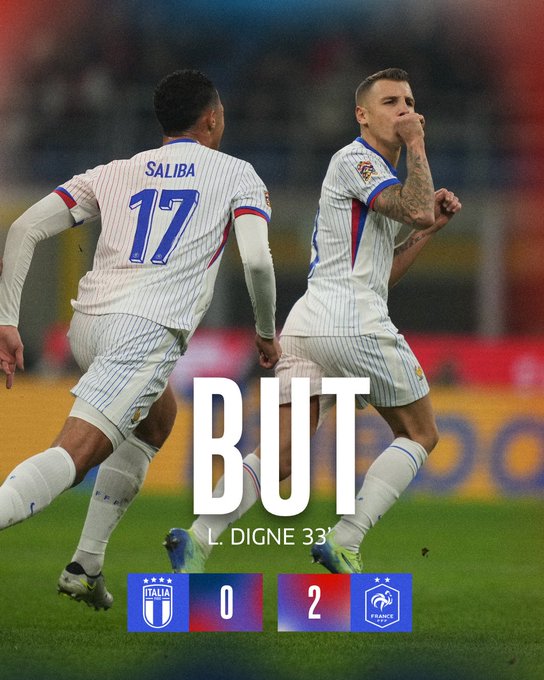 𝑹𝒆𝒏𝒅𝒆𝒛-𝒗𝒐𝒖𝒔 𝒆𝒏 𝒒𝒖𝒂𝒓𝒕𝒔 𝒅𝒆 𝒇𝒊𝒏𝒂𝒍𝒆 ! 🙌 Succès 3-1 face à l’Italie et nos Bleus terminent 𝐏𝐑𝐄𝐌𝐈𝐄𝐑𝐒 de leur groupe de Ligue des Nations 😄🔥 #ITAFRA | #FiersdetreBleus