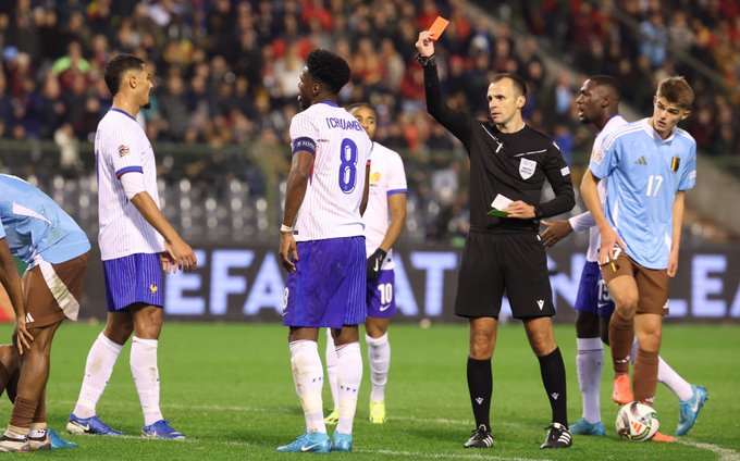 1 - Aurélien Tchouaméni est le 1er joueur de l'équipe de France exclu depuis Jules Koundé en septembre 2021 (v Bosnie), et le 1er en tant que capitaine au coup d'envoi depuis Zinedine Zidane en finale du Mondial 2006. Douloureux.