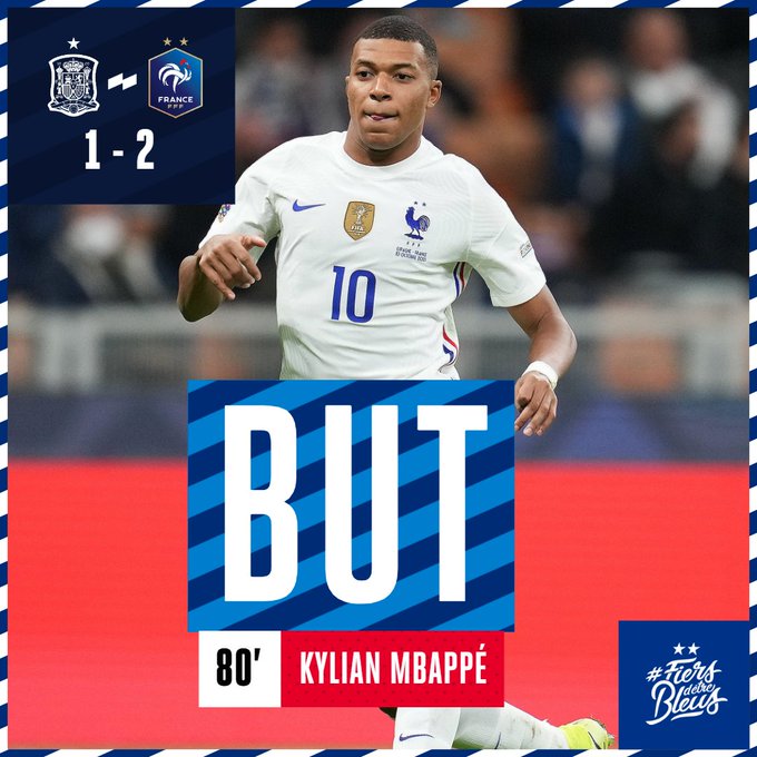 Comme face à la Belgique, Kylian Mbappé a inscrit un but déterminant pour l’Equipe de France contre l’Espagne dimanche soir (2-1). Après un Euro très mitigé, l’attaquant du PSG s’est remis la tête à l’endroit avec l’Equipe de France. Leader de l’attaque des Bleus face à la Belgique, Kylian Mbappé a encore été décisif face aux Espagnols. Si la star de 22 ans a de nouveau pesé sur le résultat de son équipe lors de la finale de la Ligue des Nations, il a néanmoins été plus discret que contre les Belges. La preuve, le journal L’Equipe lui a attribué une note décevante de 5/10, un brin surprenante quand on sait que son but a été déterminant et que sa complicité avec Karim Benzema ne cesse de grandir.