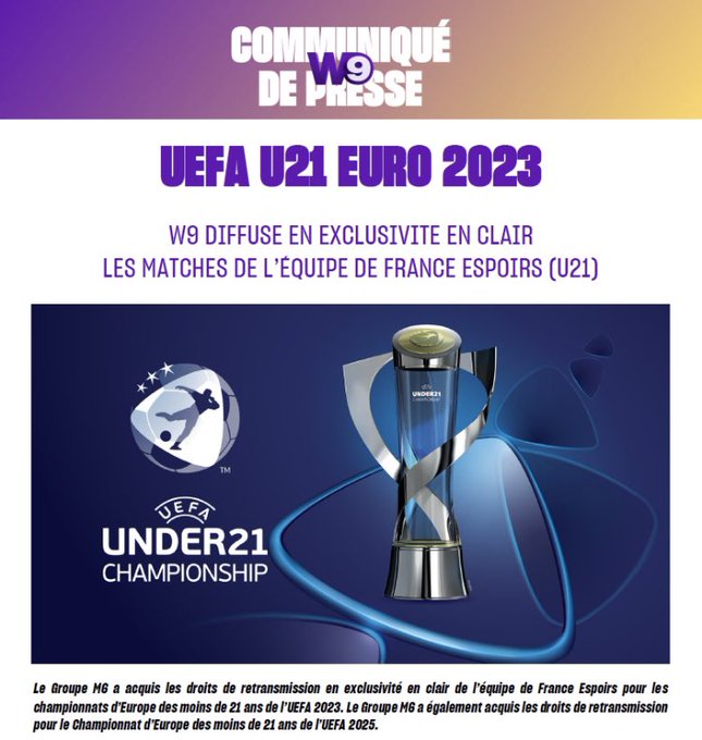 Bonne nouvelle pour le foot en clair ! W9 diffusera tous les matchs des Espoirs à l'Euro en juin-juillet.