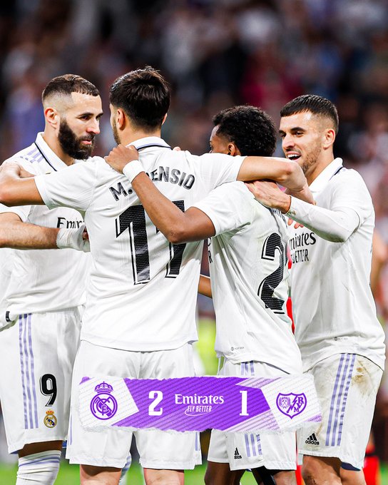 🏁 FM: @realmadridfra 2-1 @RayoVallecano ⚽ @Benzema 31'; @RodrygoGoes 89'; R.D.T 84'. #RealMadridRayo | #Emirates