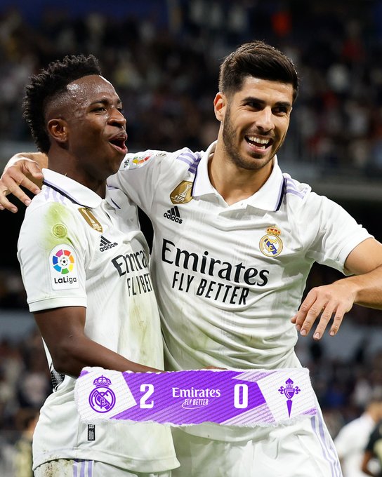 🏁 FP: @realmadrid 2-0 @RCCelta ⚽ @marcoasensio10 42', @edermilitao 47'. #RealMadridCelta | #Emirates