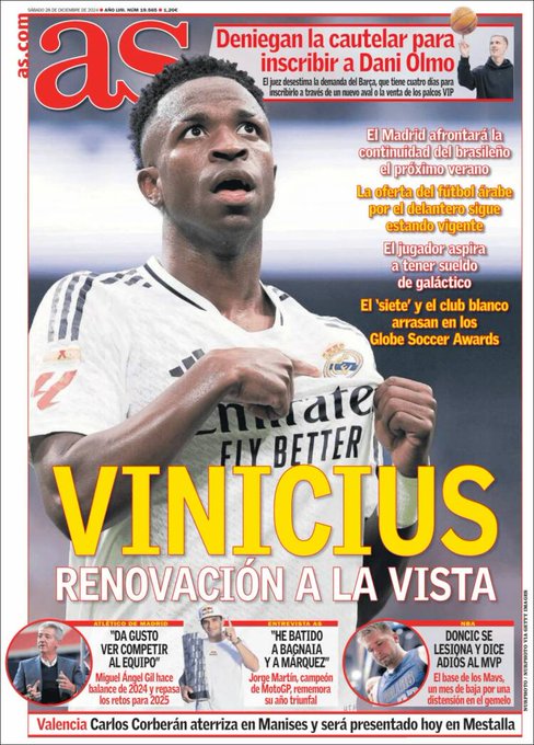 🌞 ¡Buenos días! 📰La portada de hoy: 'Vinicius, renovación a la vista'
