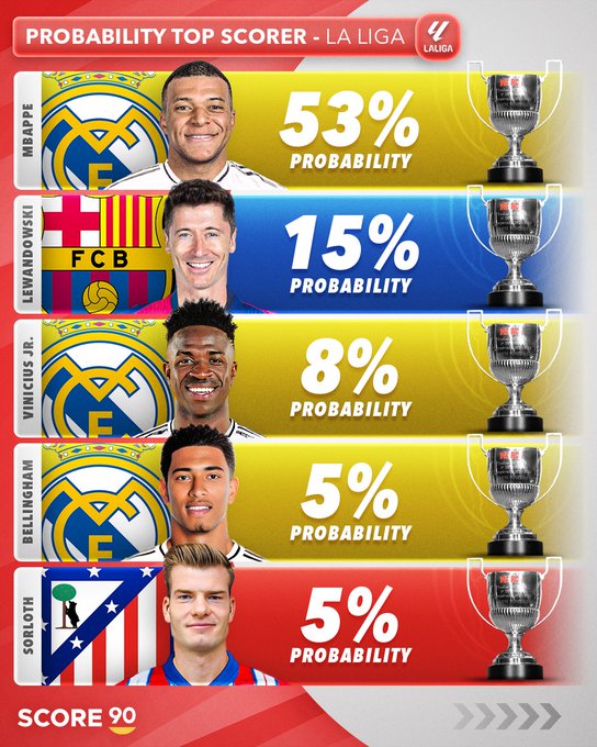 The favourites to become this season’s Top Scorer in La Liga, Premier League, Serie A, Bundesliga and Ligue 1, based on the odds by bookmakers ⚽️🏆 THREAD 🧵(1/5)