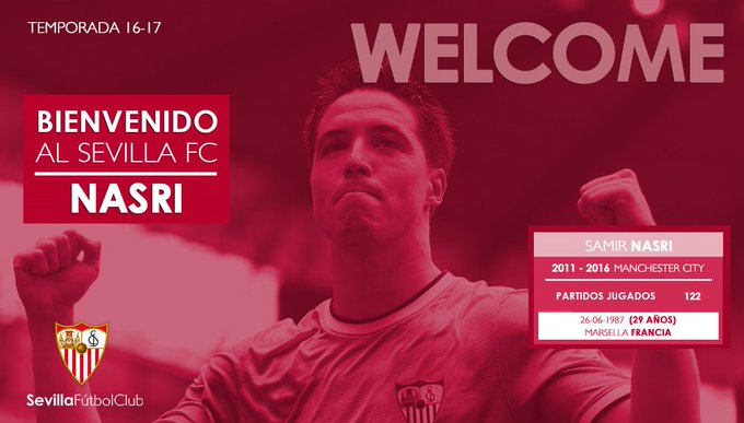 ¡@SamNasri19 bienvenido al #SevillaFC! 🙌👏⚽